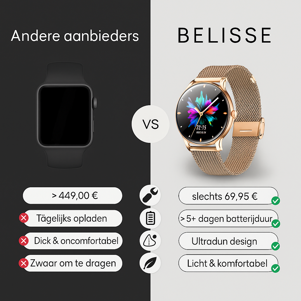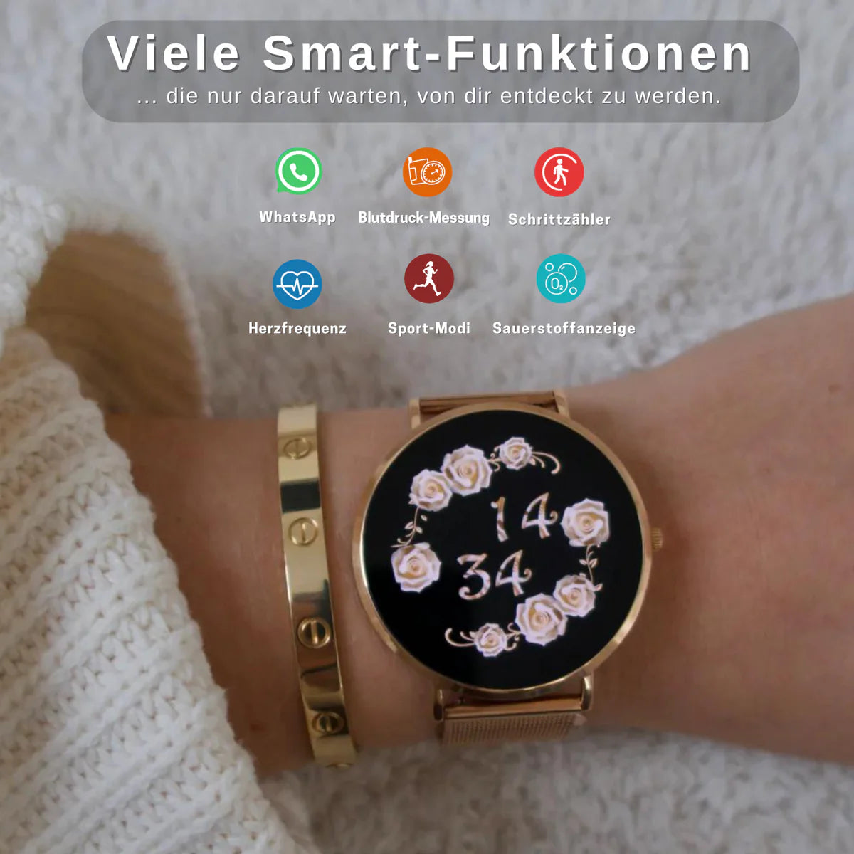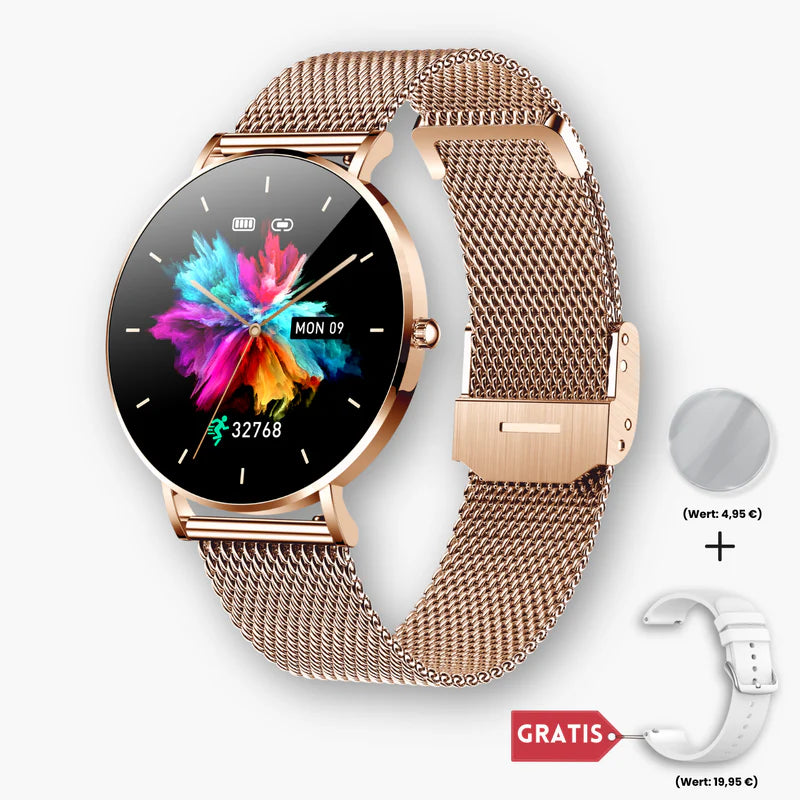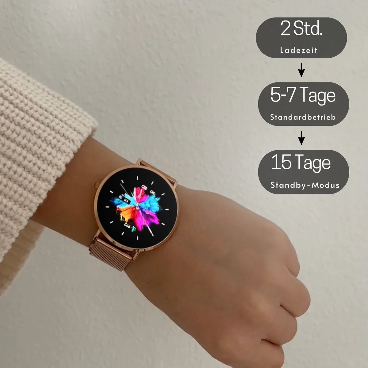Dank ihres modischen Designs ergänzt die Belisse Smartwatch jedes Ihrer Outfits perfekt: als stylisches Accessoire zum Business-Look, zum schlichten T-Shirt oder zum eleganten Kleid. So unterstreichen Sie stets Ihren individuellen Stil und ernten begeisterte Komplimente.