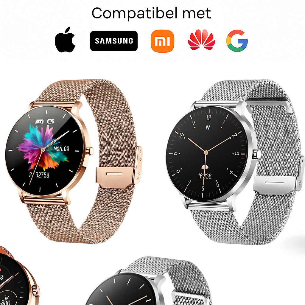 Die Smartwatch ist mit verschiedenen Handymarken kompatibel, darunter Apple, Samsung, Xiaomi und Huawei . Verbinden Sie Ihre Smartwatch einfach mit Ihrem Smartphone und erleben Sie die volle Bandbreite von 30 verfügbaren Apps und Funktionen.