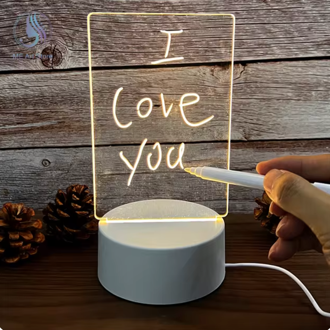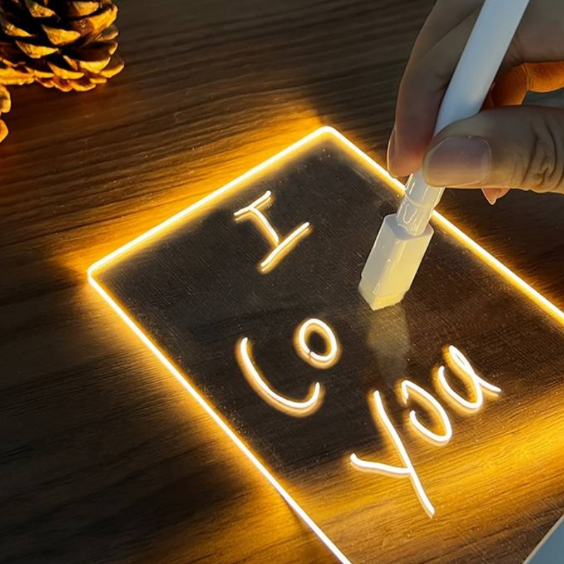 De lamp werkt met een USB-voeding en wordt geleverd met een pen waarmee je op het oppervlak kunt tekenen. De tekeningen lichten op zodra de lamp aanstaat.