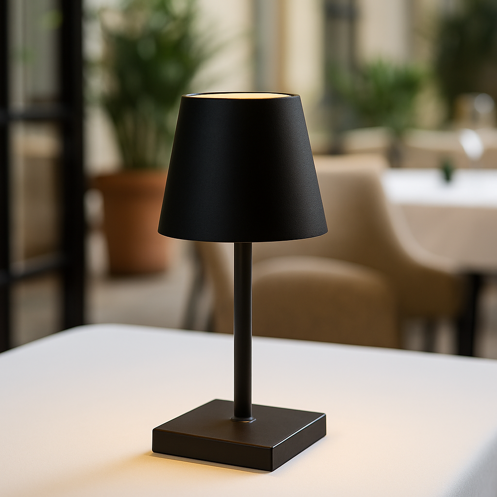 Deze tafellamp is gemaakt van stevig metaal en ontworpen om jarenlang mee te gaan. Dankzij de krachtige, oplaadbare batterij geniet je van urenlang sfeervol licht – zonder gedoe met kabels. Een praktische én stijlvolle oplossing voor elk interieur of horecazaak.