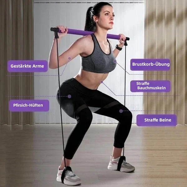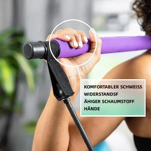 Ervaar volledige lichaamstrainingen vanuit het comfort van je eigen huis. Deze multifunctionele Pilates-bar helpt je om af te vallen, spieren op te bouwen en je flexibiliteit en mobiliteit te verbeteren. Er kunnen verschillende oefeningen (boven- en onderlichaam) worden uitgevoerd.