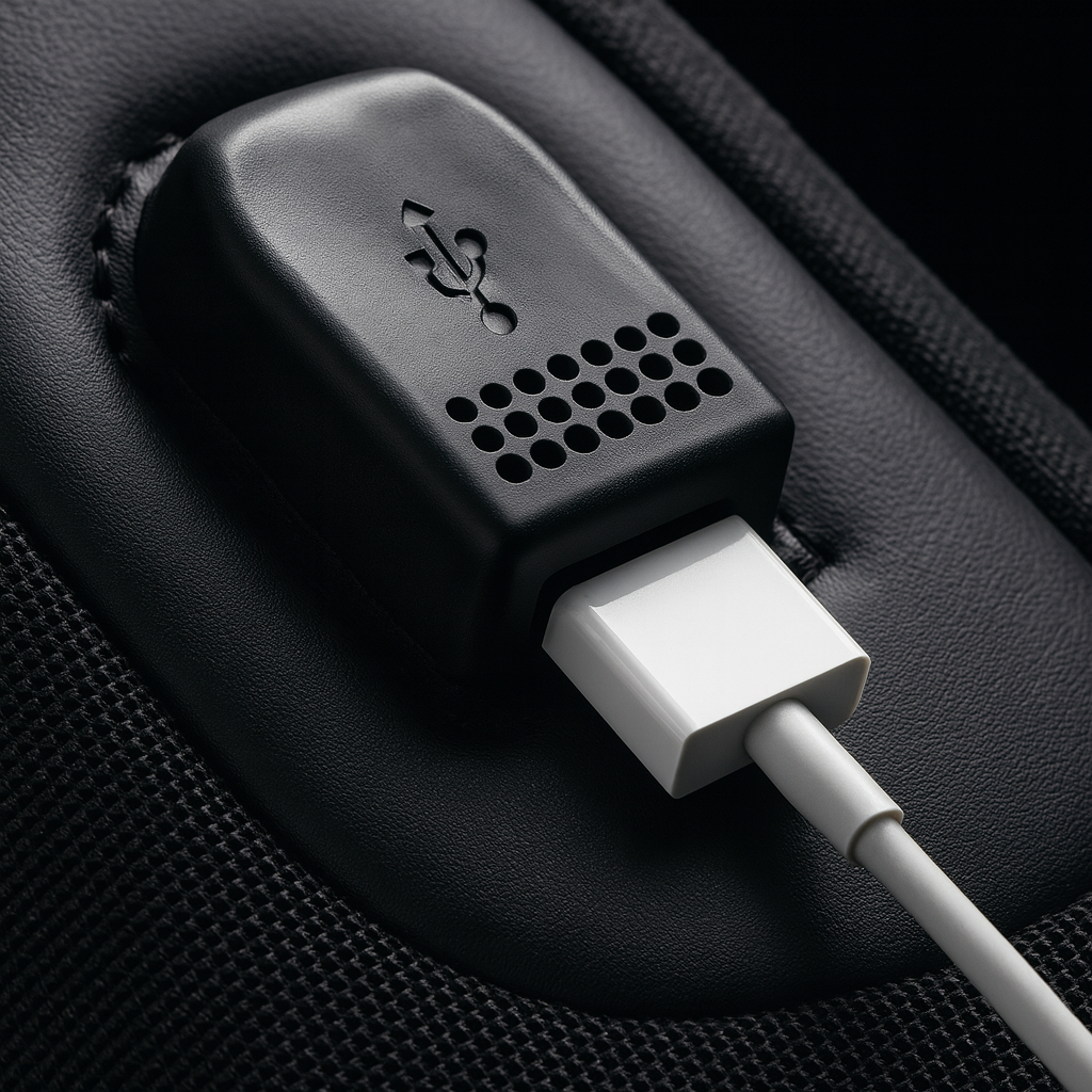 Laad je smartphone onderweg op, zonder de tas te openen of de powerbank te verwijderen.