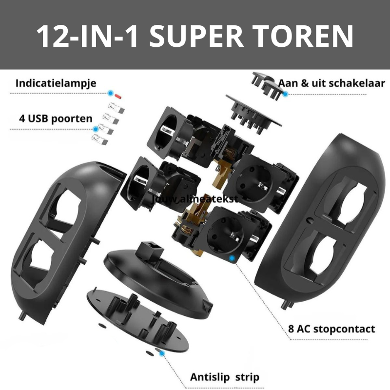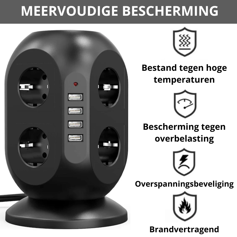Vier USB-poorten en acht stopcontacten bieden ruime mogelijkheden voor al je apparaten.